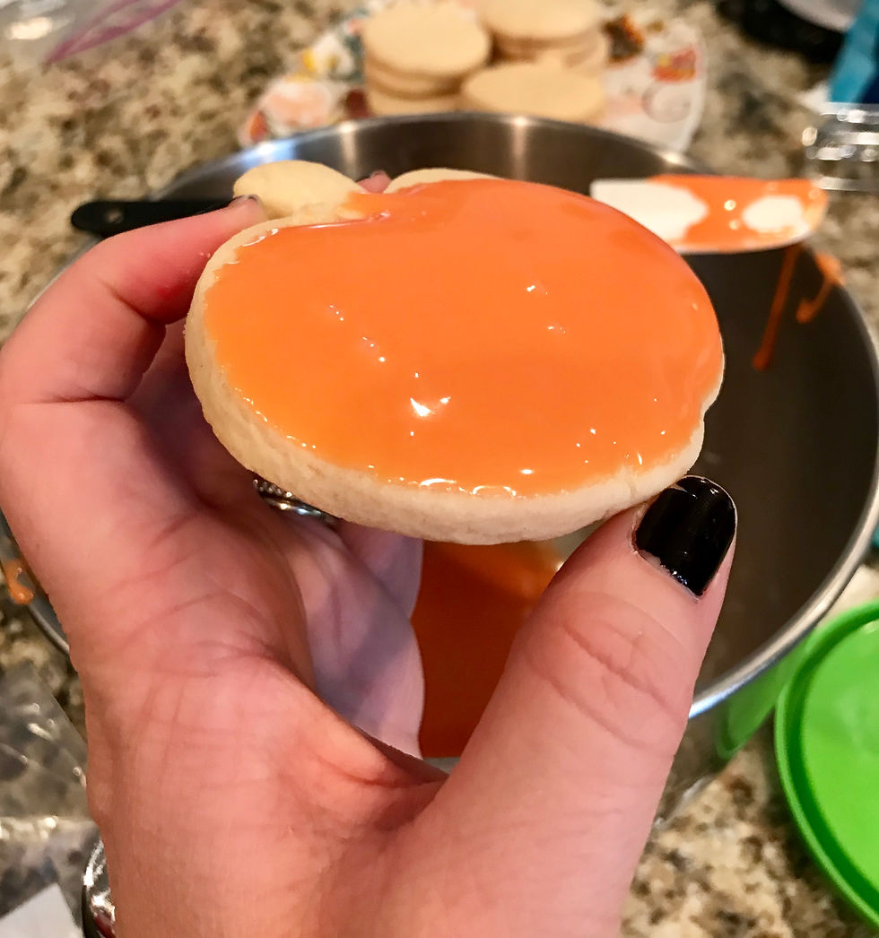 I used an easy royal icing recipe! It called for powdered sugar, water, vanilla extract and corn syrup. I didn’t have corn syrup, so I substituted with regular syrup. It worked and they tasted great! However, I don’t recommend doing the regular syrup! Ha! It didn’t set as hard as I think corn syrup would have. But, other recipes called for cream of tartar and all kinds of stuff. I didn’t want a grocery list to make cookies with the kids!